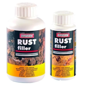 Aktiver Korrosionsschutz und Grundierung in einem Produkt. Schützt die Metallelemente vor weiterer Korrosion, indem eine Schutzschicht erzeugt wird. Leichte Anwendung und beständig gegen Lösungsmittel. Schnell trocknend. Rust Filler kann direkt auf die korrodierten Stellen aufgetragen werden. Starken Rost vorher abbürsten.